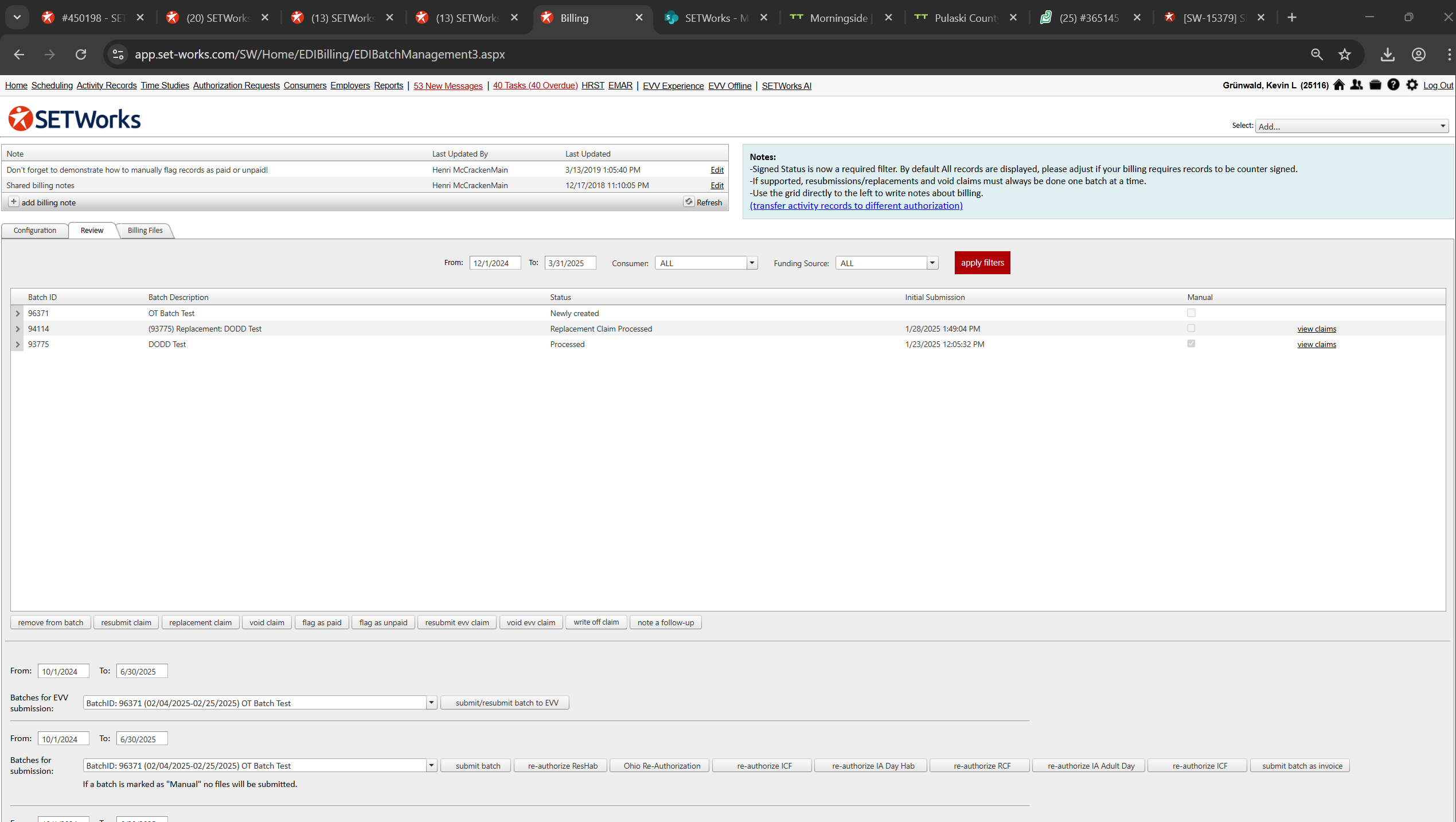 We do recommend checking for SETWorks messages as well as running the EVV Reconciliation Report about 24 hours after sending the batch to check for any rejections.